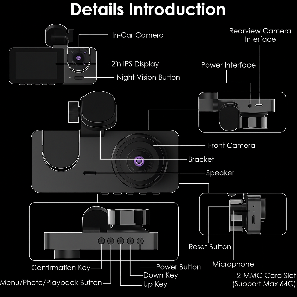 Never get blamed for an accident again. The ROADVUE 3-Lens 1080P Dash Cam records the front, rear, and inside of your vehicle simultaneously — giving you undeniable proof for insurance, safety, and peace of mind.